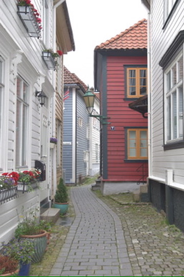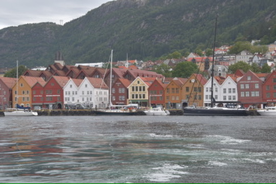 Die Reise führte uns von der Wesermündung hinaus in die Nordsee, weiter in Richtung Norwegen, mit Bergen als erster Station. Bergen, eine traditionsreiche Hansestadt, war während der Hansezeit ein wichtiger Handelsplatz, an dem deutsche Kaufleute ihre Kontorhäuser aus Holz errichteten. Diese historischen Gebäude sind bis heute original erhalten und können besichtigt werden. Natürlich beherbergen sie inzwischen zahlreiche Geschäfte und Restaurants, wie man es an touristischen Orten erwartet. Doch das macht das Ziel keineswegs weniger reizvoll – auch die Hinterhöfe der Kontorhäuser sind sehenswert. Wie so oft erkundeten wir die Stadt zu Fuß und schlenderten auf dem Weg zu den Kontorhäusern durch ein altes Viertel mit charakteristischen Holzhäusern.