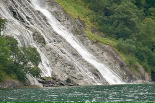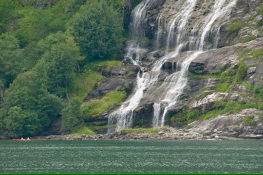 Im Gegensatz zu anderen Reiserouten oder Reedereien fuhren wir nicht mit einem Kreuzfahrtschiff in den Geiranger, sondern mit einem kleinen Schiff, ähnlich einem Postschiff, das etwa 120 Personen Platz bot. Wir fuhren zwar nicht bis ganz zum Ort Geiranger, doch das Erlebnis war dennoch atemberaubend. Die steilen Felswände, die zahlreichen Wasserfälle, die vielfältigen Felsformationen und das kristallklare Wasser – einfach beeindruckend. Die Entscheidung der norwegischen Regierung, die Einfahrt großer Schiffe in den Geiranger bald zu verbieten, halte ich für absolut gerechtfertigt und sinnvoll. Es gibt viele andere Möglichkeiten, diese grandiose Natur zu entdecken, die diesem Weltnaturerbe besser gerecht werden.