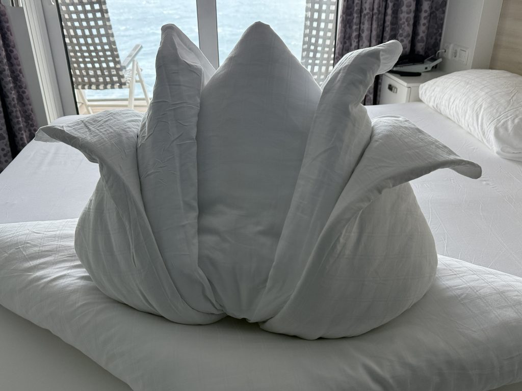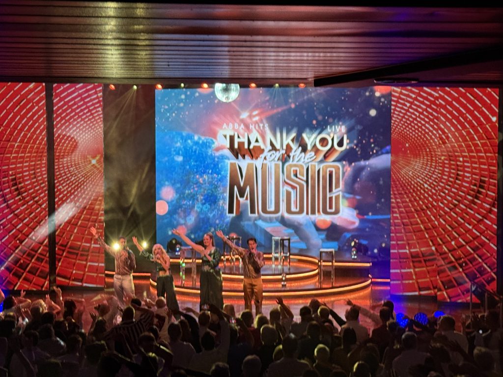 Heute ist pure Entspannung angesagt. Nach einem guten Frühstück gingen wir zunächst zurück in die Kabine und man glaubt es kaum, wir haben zwei Stündchen geschlafen, bevor wir uns etwas zu essen organisierten. Anschließend war wieder Entspannung im Ruhepol angesagt, wo sich erneut ein nettes Gespräch ergab – Mutter und Sohn aus Untergriesbach. Für den Abend hatten wir uns verabredet, das Theater zu besuchen, eine ganz besondere Show mit Hits von ABBA. Die Künstler, zwei Frauen und zwei Männer, waren allesamt großartig. Nach dem Theater fand auf dem Pooldeck die übliche White Party statt, die wir jedoch nicht besuchten. Stattdessen machten wir es uns zu viert in der Galerie Bar gemütlich und hatten jede Menge Spaß, besonders mit zwei Kellnern – richtige Kracher. So ging der vierte Tag unserer Reise zu Ende und wir freuten uns auf eine erholsame Nacht.
