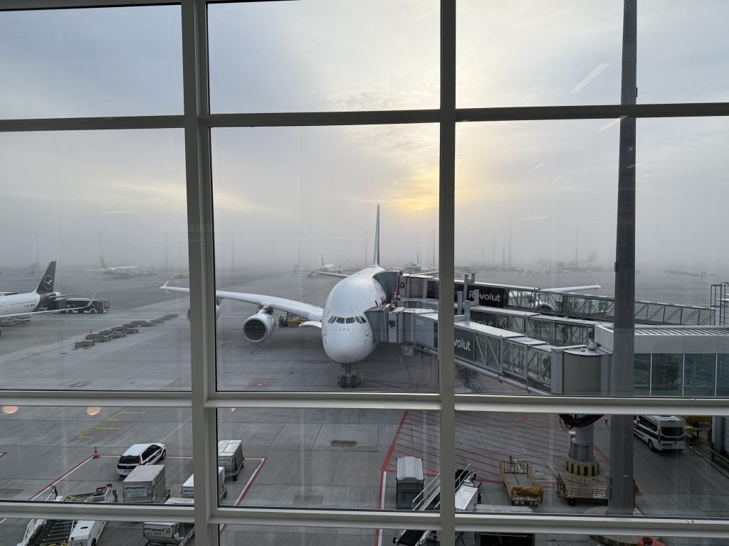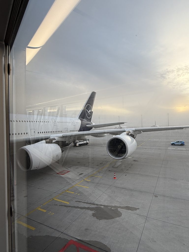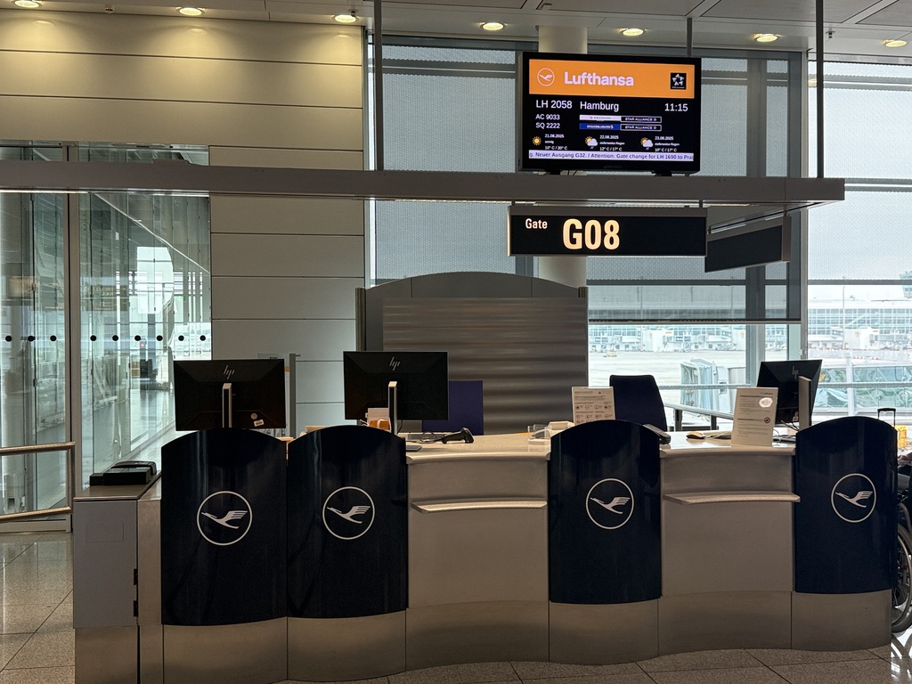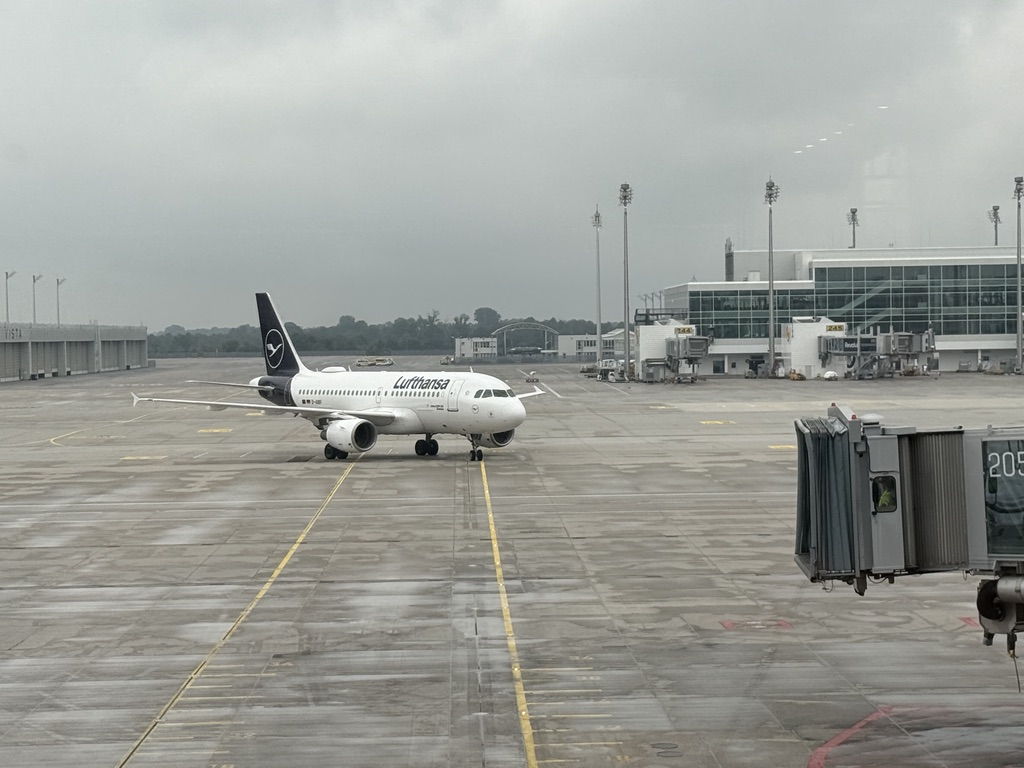 Es ist Donnerstag, der 21. August, 7 Uhr früh, und es geht los in Richtung Flughafen München. Nach erfolgreicher Parkplatzsuche im Parkhaus P7, das wir im Vorfeld reserviert hatten, schnappen wir unsere Koffer und gehen in Richtung Terminal 2, da uns die Lufthansa nach Hamburg bringt. Den Check-in hatten wir bereits zu Hause erledigt und unsere Bordkarten auf das Handy bekommen, sodass nur noch die Koffer abgegeben werden mussten. Hierfür gibt es im Terminal spezielle Schalter, an denen man das mit der digitalen Bordkarte problemlos erledigen kann. Die Sicherheitskontrolle im Terminal 2 findet mit hochmodernen 3D-Scannern statt. So machten wir uns auf den Weg zu unserem Gate, von wo uns ein Bus zu unserem Flugzeug brachte, einem Airbus A320-200. Nach kurzer Verzögerung von etwa 15 Minuten ging es dann los nach Hamburg, wo wir nach gut eineinhalb Stunden Flugzeit ankamen. Wie üblich bei solchen kleinen Flugzeugen sind immer drei plus drei Sitze nebeneinander. Wir hatten den Gang- und den Mittelsitz, den Fensterplatz belegte eine Frau, die in der Nähe von Hamburg lebt und auf den Philippinen geboren wurde. Eine sehr nette Person, mit der wir uns gut unterhalten haben.