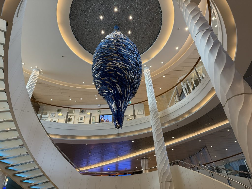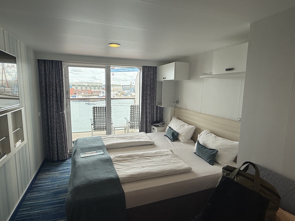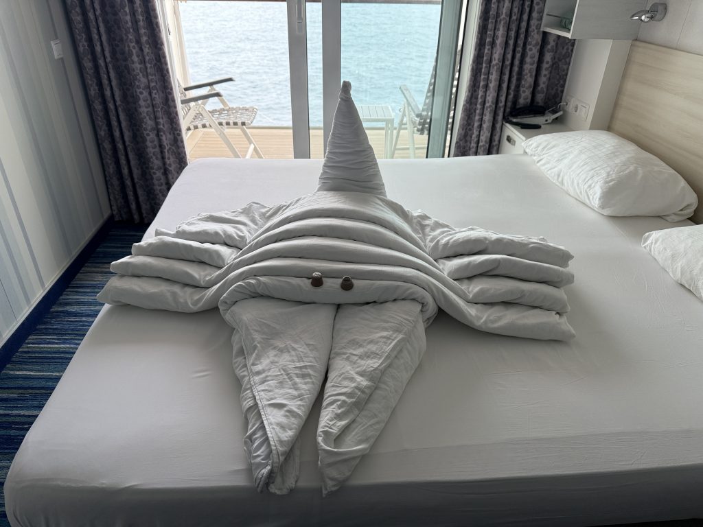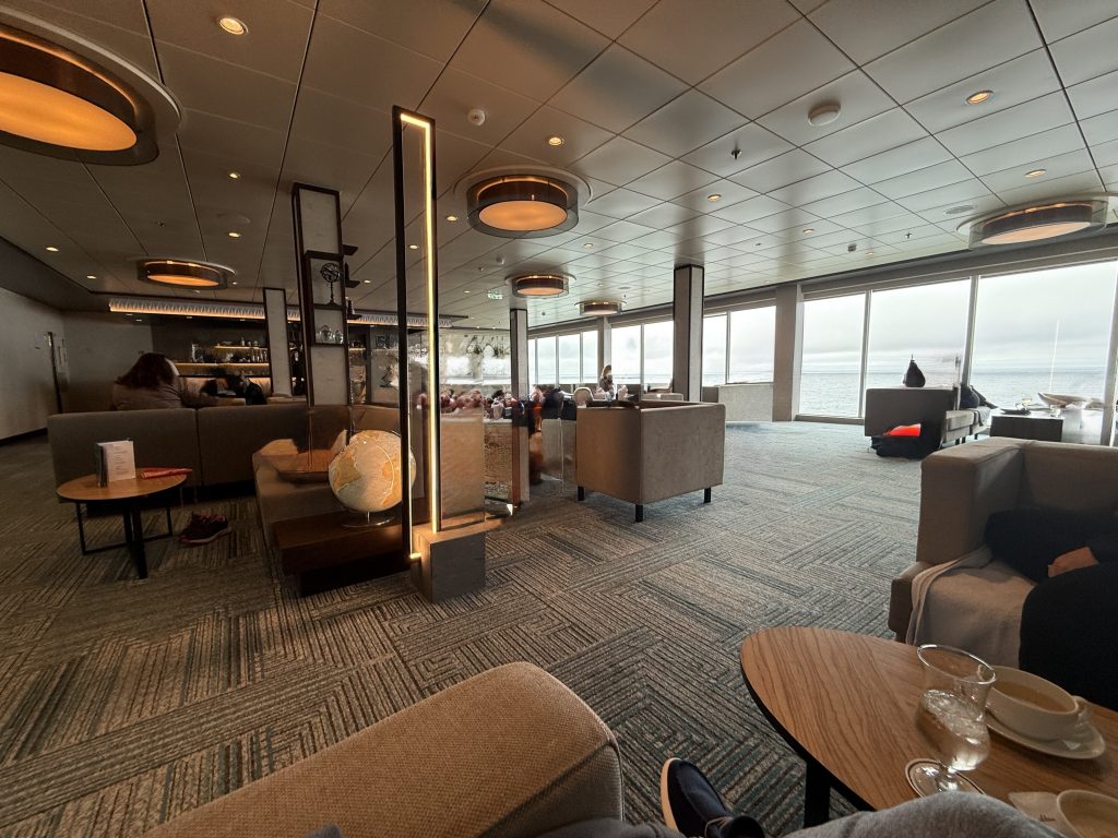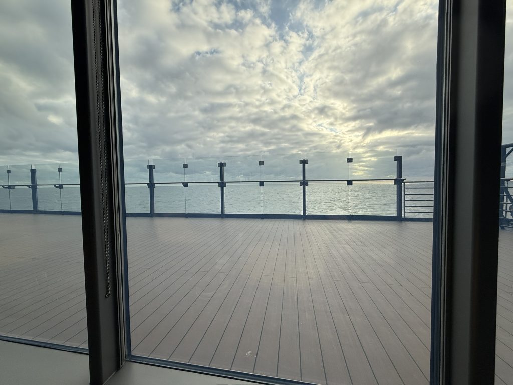 Der Tag begann recht entspannt, da wir erst gegen 10 Uhr aufstanden. Zum etwas späteren Frühstück gingen wir diesmal in die Backstube, da es dort ausnahmsweise freie Plätze gab. Viele Passagiere waren aufgrund der Uhrzeit bereits an Deck oder anderweitig auf dem Schiff unterwegs. So konnten wir unser Frühstück in Ruhe genießen. Anschließend gingen wir zur Rezeption, um unsere ESTA-Dokumente (Erklärung folgt) überprüfen zu lassen. Die Dokumente wurden auf Richtigkeit im Abgleich mit unseren Reisepässen kontrolliert und eingescannt. ESTA – was ist das? Für alle, die es nicht kennen: ESTA ist die Erlaubnis, in die USA einreisen zu dürfen. Das ESTA-Verfahren hat das sogenannte Touristenvisum abgelöst und erlaubt die Einreise und den Aufenthalt in den USA bis zu 90 Tagen. ESTA muss im Voraus beantragt werden, dabei werden zahlreiche Informationen abgefragt. Es kostet 21 US-Dollar und erst danach erfolgt die Genehmigung zur Einreise in die USA mit einer Gültigkeit von einem Jahr. Der Tag verlief weiterhin sehr entspannt, zunächst in unserem geliebten Ruhebereich mit einem Getränk und anschließend auf dem Balkon unserer Kabine. Das Wetter war schön: morgens und am Vormittag hatten wir viel Sonne auf dem Balkon, nachmittags wurde es bewölkt, aber die Temperaturen waren sehr angenehm und die See ruhig.