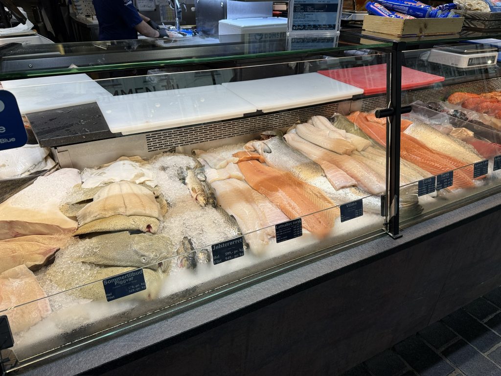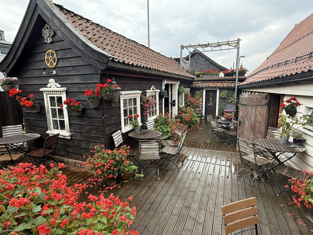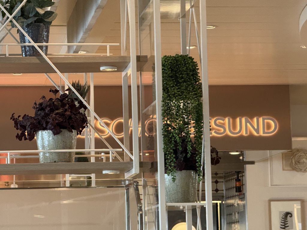 Die alte Hansestadt Bergen hatten wir bereits im letzten Jahr auf unserer Norwegen-Kreuzfahrt auf dem Plan und waren damals schon begeistert. Die Stadt blickt auf eine lange Geschichte zurück, an der die deutsche Hanse nicht unbeteiligt ist. Die berühmten Kontorhäuser zeugen von jener Zeit, in der der Wohlstand in Bergen Einzug hielt. Vom Kreuzfahrthafen aus sind es gut 30 Minuten Fußmarsch durch Berg und Tal der Stadt. Durch malerische Gassen mit typisch norwegischen, farbenfrohen Holzhäusern gelangten wir zum alten Hafen. Dort zeigt sich die bekannte Silhouette der Kontorhäuser, des Schlosses und der beiden Hausberge Floyen und Ulriken. Wie bereits im letzten Jahr führte uns der Weg in und vorbei an den Markthallen mit frischem Fisch und Restaurants sowie einem Markt mit zahlreichen Ständen für die einfallenden Touristen. Angeboten wird hier unter anderem auch Walfleisch, das man jedoch aus ethischen Gründen nicht kaufen sollte. Wir schlenderten weiter entlang des Hafenkais und der Kontorhäuser bis zum Schloss, denn Bergen war früher auch Hauptstadt Norwegens. Die Schlossmauer ist von zahlreichen Kanonen aus der Vergangenheit gesäumt, und innerhalb der Mauern befindet sich außerdem ein Park. Am Ausgang zeigte sich ein weiteres Kreuzfahrtterminal, an dem zu diesem Zeitpunkt ein Schiff der AIDA-Flotte lag. Für unseren Rückweg wählten wir die Rückseite der Kontorhäuser, die ebenfalls sehr einladend ist – die Touristenmassen hingegen nicht, aber das gehört dazu. Wir kamen ebenfalls an der Floyenbahn vorbei, ebenfalls mit einer Traube an Menschen, die unbedingt den Berg erklimmen wollten, um einen der bekanntesten Ausblicke von oben auf die Stadt zu genießen. Wir hingegen gingen weiter in Richtung der Fußgängerzone. Auf dem Weg dorthin gönnte ich mir zunächst ein Eis und als kulinarischen Leckerbissen eine typische Fischsuppe und frisch zubereitetes Sushi. Auch typisch regionales Bier durfte nicht fehlen. Gut gestärkt ging es weiter in Richtung Schiff, durch die Fußgängerzone und zahlreiche Seitenstraßen, bis wir wieder an unserem Ausgangspunkt ankamen, unsere Kabine aufsuchten und erst einmal ein wenig entspannten. Meine Entspannung ging so weit, dass ich mich zu einer wohltuenden Massage aufmachte.