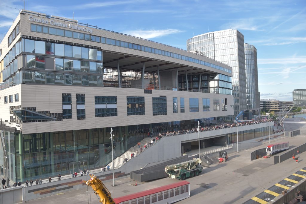 Gegen 4:45 Uhr wurde ich wach, öffnete die Vorhänge und sah, dass wir in meinem geliebten Hamburg sind und alle Vorbereitungen zum Anlegen laufen. Unser Kapitän drehte das Schiff, sodass wir mit der Steuerbordseite am Kai der HafenCity anlegten. Wie wir erfuhren, war es die Premiere für die Mein Schiff, hier festzumachen. Die HafenCity mit der Elbphilharmonie und dem Hafen-Terminal bot zahlreiche Motive, die es galt festzuhalten. Besonders beeindruckend waren die Spiegelungen in den Fenstern der Gebäude. Wir legten uns noch einmal etwas hin, bevor wir wieder ins Restaurant Atlantik gingen, um ein leckeres Frühstück zu genießen. Gut gestärkt machten wir uns dann auf den Weg, die HafenCity zu erkunden. Das Schiff verließen wir über eine kleine, per Kran angebrachte Gangway. Der Ausgang war zunächst auf Deck 3, wurde aber aufgrund des Tidenhubs auf Deck 4 verlegt. Vom Hafenterminal gelangt man direkt in das Einkaufszentrum Westfield mit zahlreichen Geschäften, wie man sie von anderen Einkaufspassagen kennt. Von hier aus gelangt man direkt in die HafenCity, die ebenfalls Geschäfte, Büros, Wohnungen und eine Fußgängerzone umfasst, in der sich Alt- und Neubauten sehr schön miteinander verbinden. Unser Ziel war unter anderem eine Kaffeebohnen-Skulptur. Hamburg gilt ja als alte Hansestadt und durch die alten Kontorhäuser als die Kaffeestadt Deutschlands. Von der Bohne aus schlenderten wir weiter zu einem Aussichtspunkt, der einen herrlichen Blick auf die Elbphilharmonie, das Musicaltheater und den Hafen bietet. Von hier aus gelangten wir auf direktem Weg zurück zum Schiff, das wir nach einem kurzen Einkaufsbummel und natürlich durch die Sicherheitskontrollen wieder betraten. An Bord angekommen, ging es zum Tag und Nacht Bistro, um eine Kleinigkeit zu essen. Nach einer Stunde Verspätung liefen wir dann um 18:00 Uhr aus Hamburg aus, gesäumt von zahlreichen Menschen die uns von Land aus verabschiedeten mit Winken und „Gute Reise“ Rufen. Neben uns fuhren auch Hafenbarkassen und kleinere Boote, die uns aus dem Hafen geleitet haben. Bis weit über Hamburg hinaus säumten immer wieder Menschen das Elbufer um uns und unsere Mein Schiff 1 zu verabschieden, auf die große weite Fahrt nach Amerika. Es war eine sehr rührende Geste und man konnte sich durchaus hineinversetzen, wie es den Auswanderern seinerzeit ging. Den Tag ließen wir dann bei einem leckeren Essen im Tag und Nacht Bistro und anschließend bei einem Drink in der Galerie Bar ausklingen. Wie an den Tagen zuvor hatten wir an der Bar wieder eine Menge Spaß und lernten wieder nette Leute kennen.