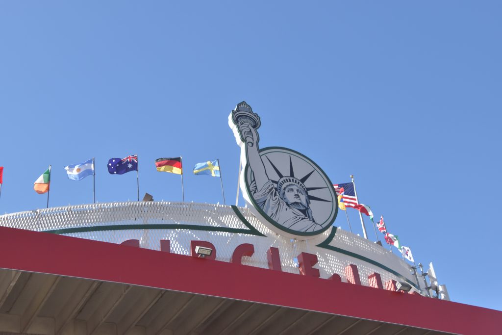 So steuerten wir unseren Liegeplatz im Hafen von Bayonne an, einer Industriestadt im Bundesstaat New Jersey. Hier treffen sich zwei US-Bundesstaaten, New Jersey und New York. Der Bundesstaat New York besteht aus fünf Bezirken, sogenannten Boroughs/Countys, von denen Manhattan der am stärksten besuchte und Brooklyn der einwohnermäßig größte ist. Bevor wir jedoch unsere Erkundung starten konnten – wir hatten uns einen Ausflug über das Schiff gebucht – stand die formelle Einreise, Immigration, auf dem Programm. Dazu hatten wir eine Zeit vorgegeben, zu der wir das Schiff verlassen durften. Es war kurz vor 10:30 Uhr, wir fuhren mit dem Aufzug auf das Ausgangsdeck und staunten nicht schlecht über die bereits vorhandene Schlange an Mitpassagieren. Wie es sich gehört, stellten wir uns an das Ende der Warteschlange und übten uns in Geduld, bis wir von Bord gehen konnten. Der Kreuzfahrtmanager machte immer mal wieder eine Durchsage über den Stand der Dinge, da plötzlich gar nichts mehr ging. Die US-Behörden hatten das Terminal wegen Überfüllung kurzzeitig geschlossen und nach gut einer Stunde die Tore wieder geöffnet. Im Terminal angekommen hieß es dann nochmal Schlangestehen, wobei hier getrennt nach individuellen und geplanten Ausflügen über das Schiff abgefertigt wurde. Mitarbeiter von TUI Cruises und der US-Behörden taten alles, um die Abwicklung so reibungslos wie möglich zu gestalten. Hier trafen wir auch unsere Freunde aus Franken wieder, die bereits eine Stunde vor uns in der wartenden Schlange standen. Nun war es so weit: Ein Beamter, typisch amerikanisch, wie man sich ihn vorstellt, kontrollierte und dokumentierte unsere Pässe samt ESTA, zusammen mit einem Foto und unseren Fingerabdrücken. Hier sei anzumerken, dass es nicht notwendig gewesen wäre, wenn wir innerhalb der letzten Jahre in die USA eingereist und diese Daten bereits abgegeben hätten.