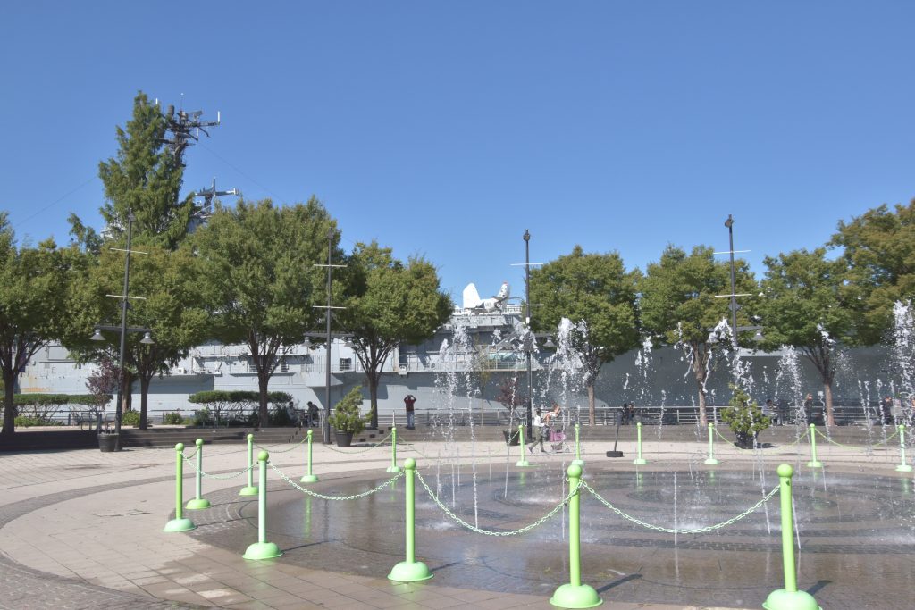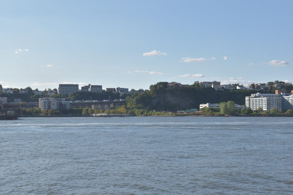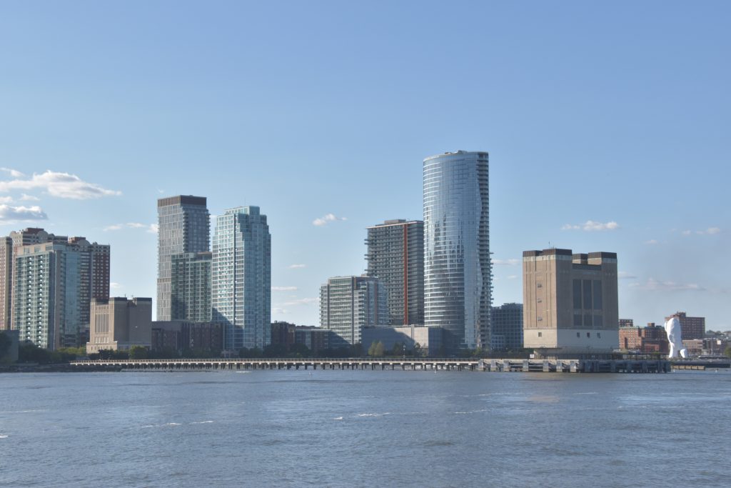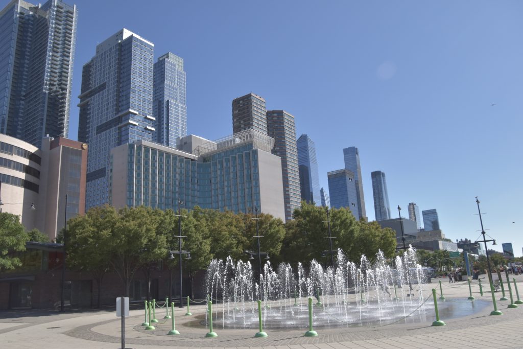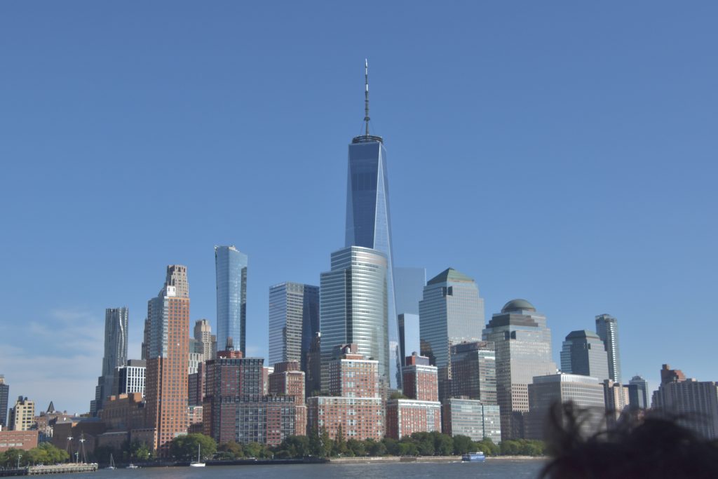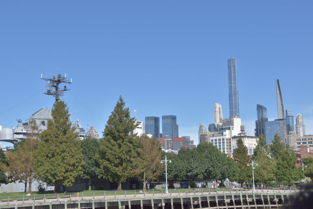 Unser Bus stand schon bereit, die Fahrt fortzusetzen, und es ging weiter zum Pier 83, unserer Anlegestelle für die gebuchte Bootsfahrt auf dem Hudson River. Nach der Ankunft am Pier hatten wir noch etwas Zeit, so schlenderten wir über die Anlage. Der Hudson Park mit Springbrunnen in der Mitte und einem herrlichen Blick auf die Skyline und die Silver Towers mit unzähligen Wohnungen. In unmittelbarer Nähe befindet sich auch ein Marinemuseum mit einem Flugzeugträger, einem weiteren Marineschiff und einer ausgemusterten Concorde der Air France. Nachdem unser Reiseführer die Tickets besorgt hatte, stiegen wir auf unser Ausflugsschiff, nichts ahnend, dass wir noch eine gute dreiviertel Stunde bis zur Abfahrt warten mussten. Zwischendurch machte der, wie ich vermute, Älteste an Bord immer mal wieder Durchsagen in Sachen Sicherheit und so weiter, vermutlich um das Warten etwas zu verkürzen. Nördlich von uns hatte ein anderes Kreuzfahrtschiff angelegt, von dort hörten wir lautstark Musik – es war wohl eine Party am Laufen. Dann ging es endlich, aber auch pünktlich los, und wir verließen den Anleger in Richtung Freiheitsstatue. Linkerhand die Skyline von Manhattan, vor uns die Freiheitsstatue und Ellis Island, dem ersten Ziel aller Einwanderer. Die Fahrt bot zahlreiche wunderschöne Fotomotive, wobei ein Foto bei weitem nicht die Eindrücke wiedergeben kann. Wir umrundeten die Freiheitsstatue und fuhren zurück in Richtung Anleger. Linkerhand wieder sehr beeindruckende Gebäude, alt und neu gemischt. Der Ausflug war auf alle Fälle lohnenswert.