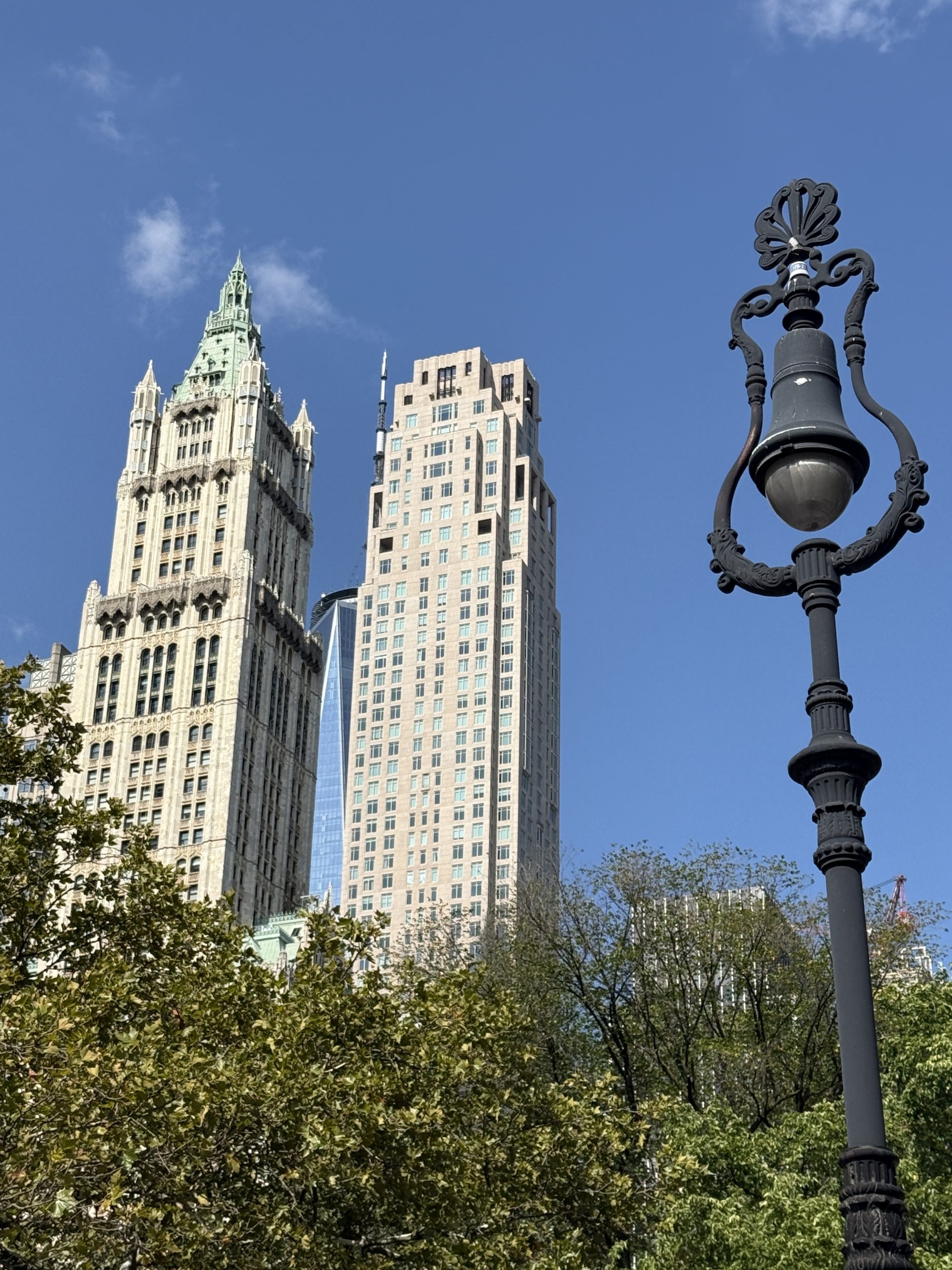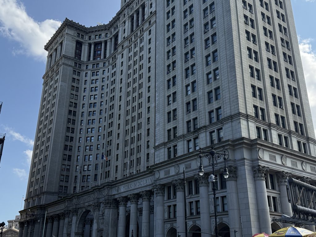 Wie zu erwarten, waren wir nicht die einzigen Touristen auf der Brücke – sie ist ein wahrer Magnet. Fotografiert wird an allen Ecken und mit allen möglichen Posen. Nach gut einer Stunde Fußmarsch erreichten wir Manhattan, wo unser Reiseleiter bereits auf uns wartete. Auf dem Vorplatz herrschte reges Treiben mit zahlreichen Hotdog- und Souvenirständen. Am Fuß der Brooklyn Bridge befindet sich unter anderem die City Hall, der Amtssitz des Bürgermeisters von New York, mit einer schönen Parkanlage – und das mitten in der Stadt.