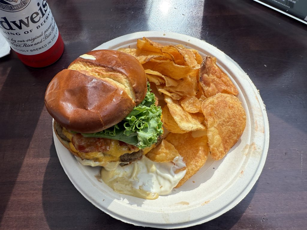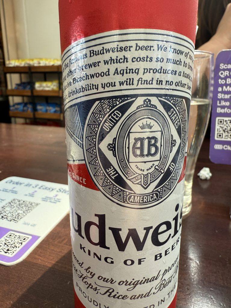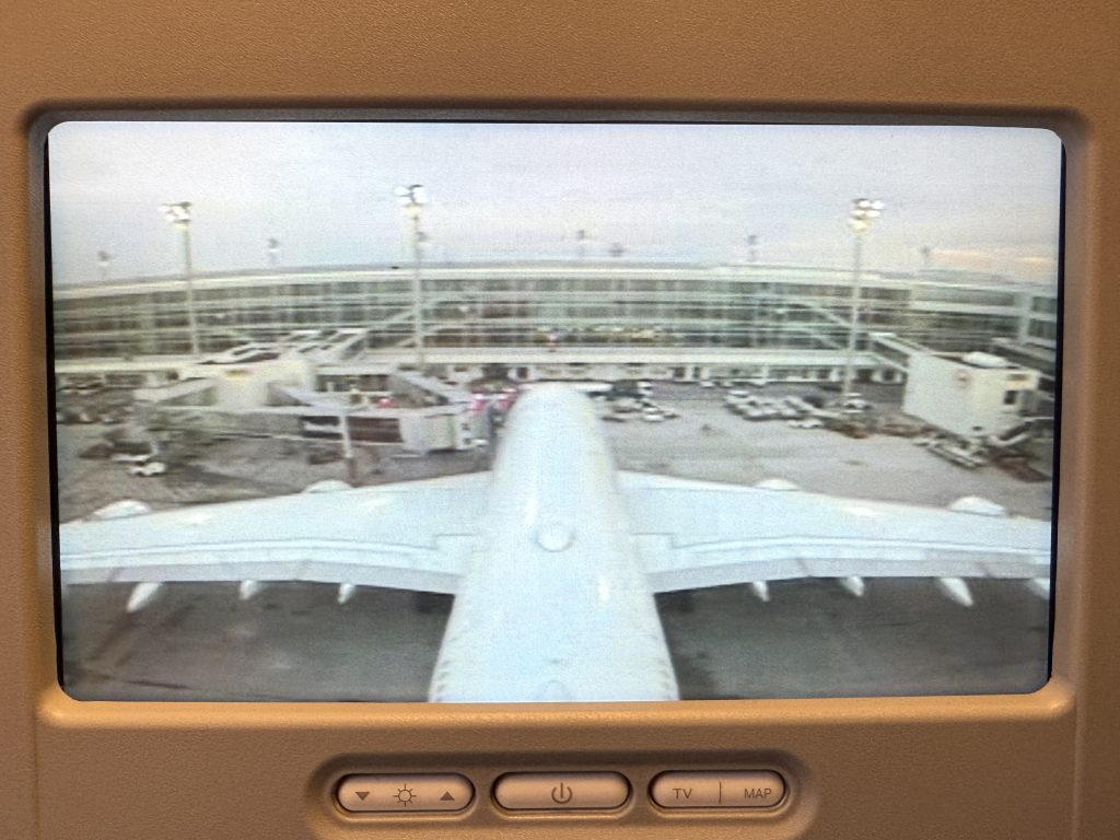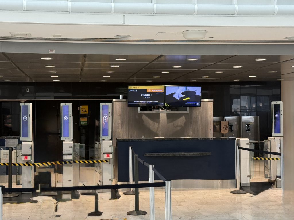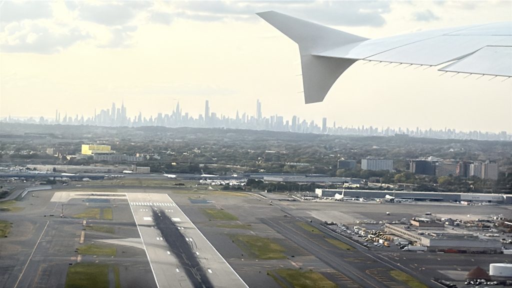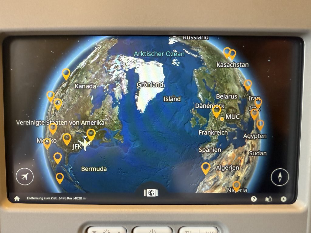 Am Flughafen JFK Terminal 1 angekommen, begaben wir uns zum Check-in, gaben unsere Koffer ab und passierten die Sicherheitskontrolle. Auf dem Weg zu unserem Gate gönnten wir uns noch eine Stärkung für den langen Flug: Ich genoss einen typischen Burger mit Budweiser, meine Frau eine typische Wurstpizza (mit Hackfleisch), Sprite und gemeinsam ein Stück New Yorker Cheesecake – alles zusammen für 81 Dollar. Das ist New York, aber es war lecker, und das ist die Hauptsache. Schließlich is(s)t man ja im Urlaub.