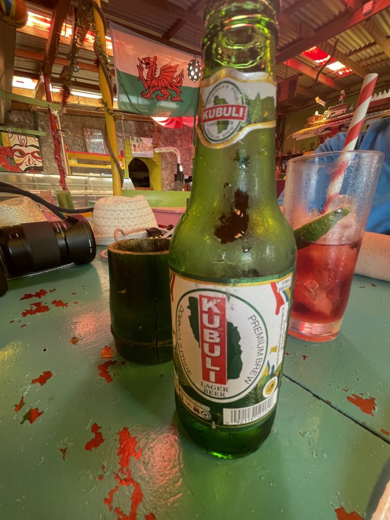 Kubuli, ein leckeres Bier direkt von Dominica, das man am besten in der Ruin Bar genießt