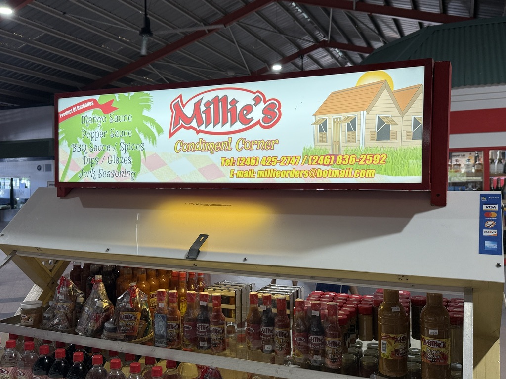 Ein Stand mit heimischen Gewürzen und Spezialitäten im Cruise Terminal von Barbados